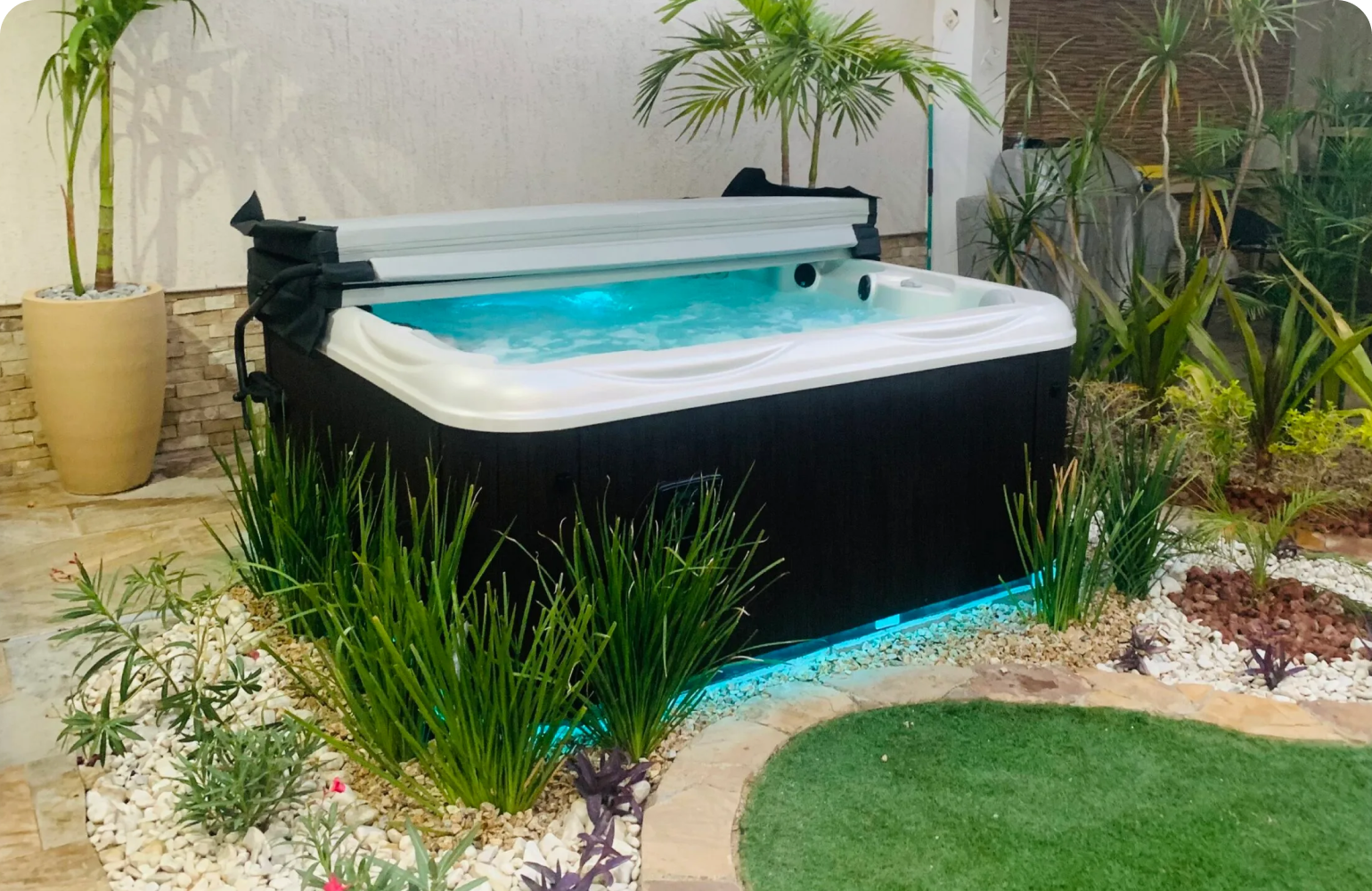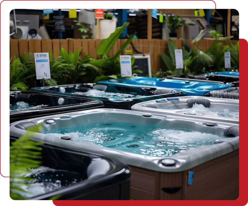 Explore our showroom of premium hot tubs, crafted with quality materials and modern technology for unmatched comfort and relaxation.